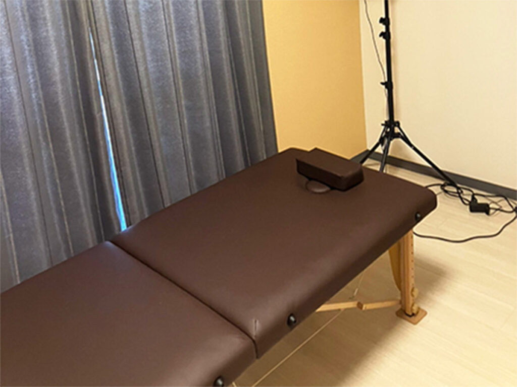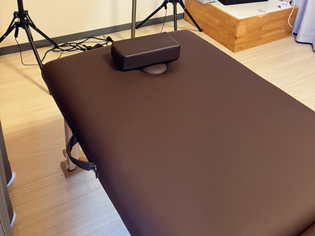 施術ごとにベッド・枕を消毒し、清潔な環境を整えています。